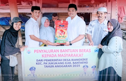 BANTAENG.CAHAYASULSEL.COM – Bupati Bantaeng, M. Fathul Fauzy Nurdin, secara simbolis menyerahkan bantuan beras kepada masyarakat Desa Biangkeke, Kecamatan Pa’jukukang, Bantaeng. Penyaluran bantuan beras ini merupakan bagian dari program Pemerintah Desa Biangkeke untuk membantu meringankan beban masyarakat pada Tahun Anggaran 2025. Minggu, (9 Maret 2025).