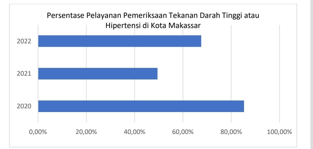 Grafik 2. Persentase Pelayanan Tekanan Darah Tinggi (Hipertensi) di Kota Makassar Tahun 2020-2022