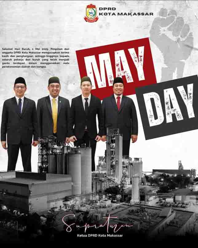 Dalam momentum Hari Buruh Internasional 1 Mei 2025, pimpinan dan anggota DPRD Kota Makassar menyampaikan ucapan selamat dan apresiasi kepada seluruh pekerja yang menjadi tulang punggung kehidupan sehari-hari, dari sektor formal hingga informal.