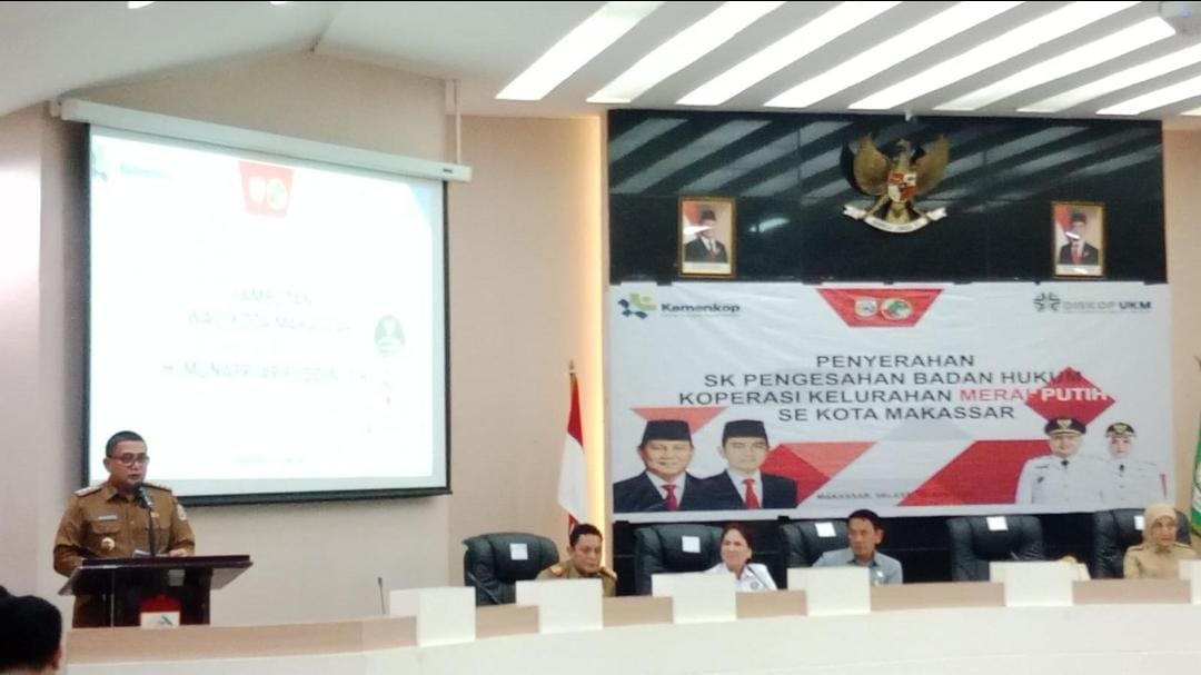 Momentum penting ini ditandai dengan penyerahan secara simbolis Surat Keputusan (SK) Pengesahan Badan Hukum Koperasi Merah Putih oleh Wali Kota Makassar, Munafri Arifuddin, didampingi Wakil Wali Kota Makassar, Aliyah Mustika Ilham, Di Ruang Sipakatau Balai Kota Makassar, Selasa (10/6/2025).
