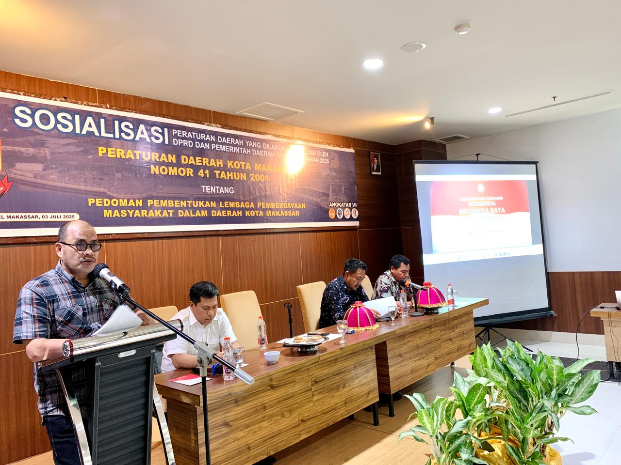 Kegiatan ini juga menghadirkan dua narasumber lainnya, yakni Andi Ansar, S.STP, M.Si (Kabag BPM Kota Makassar) yang membahas teknis pelaksanaan Perda, dan M. Izhar Kurniawan, SH (Kabag Hukum Pemkot Makassar) yang mengupas sisi yuridis. Moderator acara adalah Basri Rahman, SE.