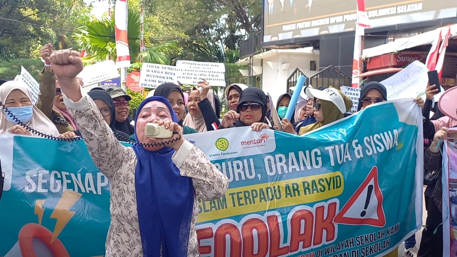 MAKASSAR, CAHAYASULSEL.COM – Pagi yang tenang di depan Kantor DPRD Kota Makassar mendadak dipenuhi spanduk dan teriakan. Puluhan warga dari Mula Baru, Tamalalang, Alamanda, dan Akasia, bersama para orang tua dan guru dari Sekolah Terpadu Ar Rasyid, menggelar aksi unjuk rasa pada Rabu (6/8/2025). Mereka datang sebagai Gerakan Rakyat Tolak Lokasi Pembangunan PLTSa (GERAM PLTSa) untuk menyuarakan penolakan keras terhadap rencana pembangunan fasilitas Pengolahan Sampah menjadi Energi Listrik (PSEL) oleh PT Sarana Utama Energy (SUS).